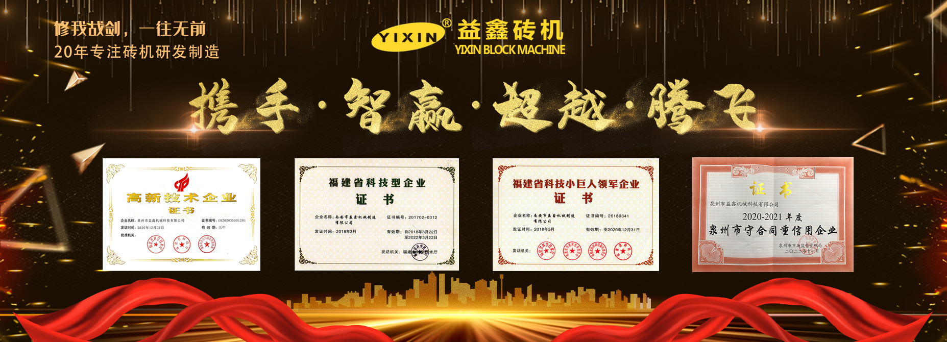 [公司動態(tài)] 喜獲殊榮,泉州市益鑫機械科技有限公司(益鑫磚機)憑借雄厚的技術實力,專業的研發(fā)隊伍,持續(xù)不斷的創(chuàng)新能力,科學的企業管理,榮獲“國家高新技術企業”證書!這標志著益鑫磚機在磚機制造科技創(chuàng)新能力上得到了國家層面的充分認可與支持,由此正式邁入高新技術企業行列。